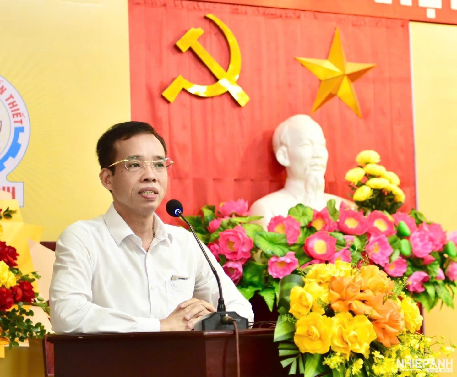 Đồng chí Hoàng Minh Tuấn, Bí thư Đảng ủy, Chủ tịch kiêm Giám đốc Công ty TNHH MTV Xổ số kiến thiết Quảng Bình phát biểu tại buổi lễ