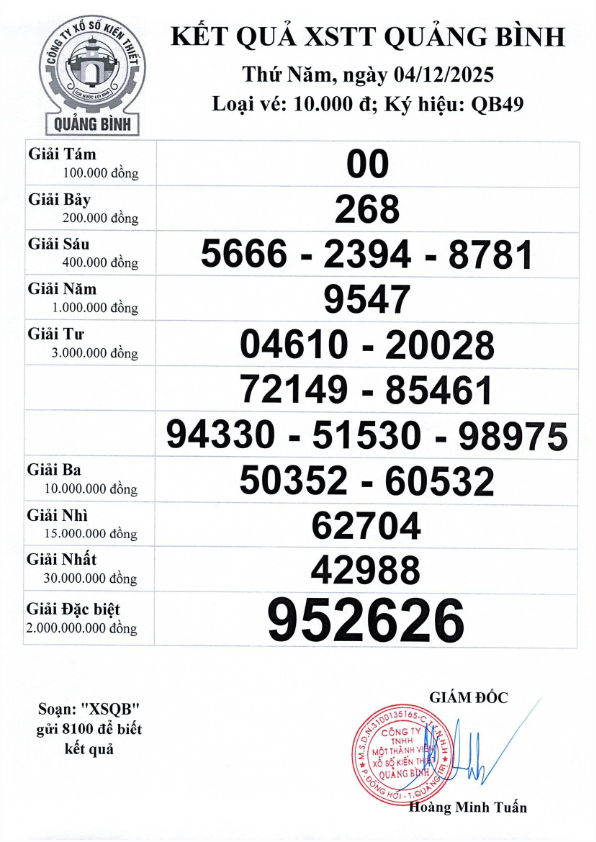 Kế quả ngày 04/12/2025; Ký hiệu QB49