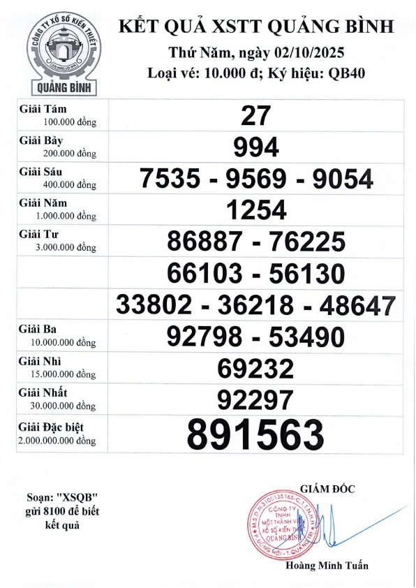 Kết quả ngày 02/10/2025, Ký hiệu: QB40