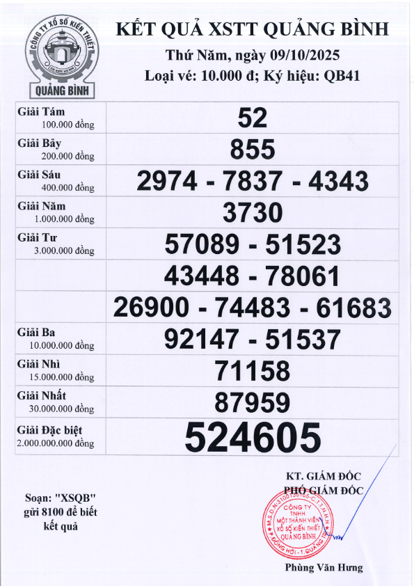 Kết quả ngày 09/10/2025; Ký hiệu QB41