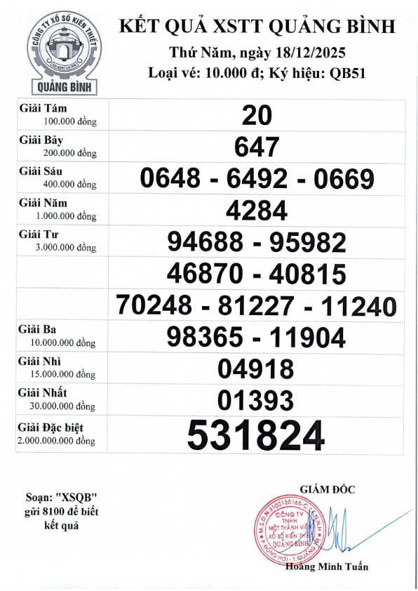 Kết quả ngày 18/12/2025; Ký hiệu QB51