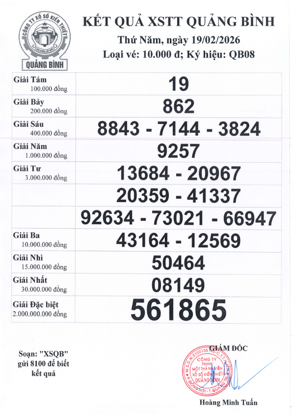 Kết quả ngày 19/02/2026; Ký hiệu QB08