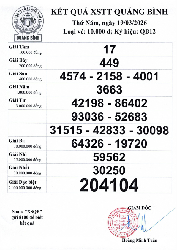 Kết quả ngày 19/3/2026; Ký hiệu QB12
