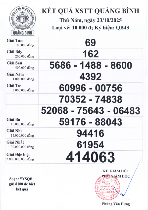 Kết quả ngày 23/10/2025; Ký hiệu QB43