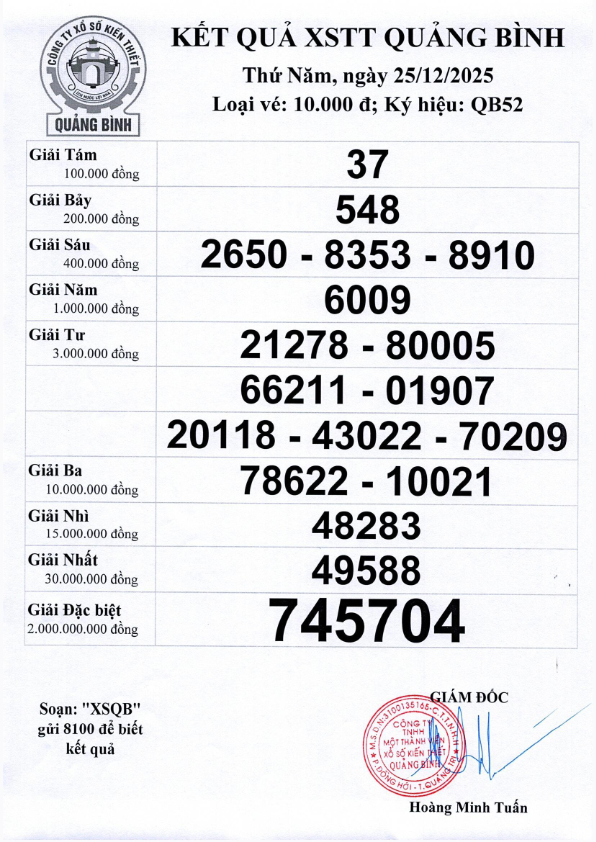 Kết quả ngày 25/12/2025; Ký hiệu QB52