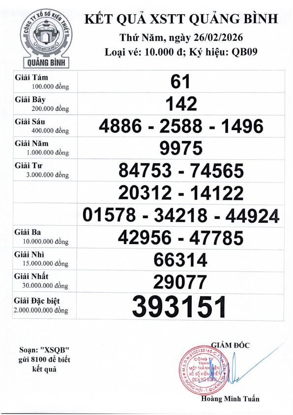 Kết quả ngày 26/02/2026; Ký hiệu QB09