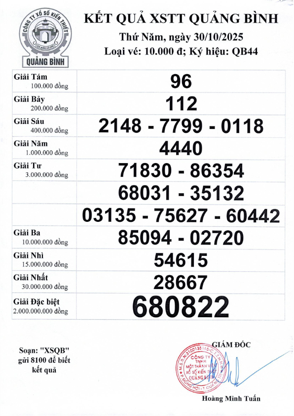 Kết quả ngày 30/10/2025, Ký hiệu: QB44